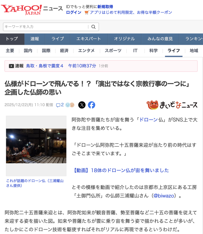 ドローン仏がYahoo!ニュースに載りました